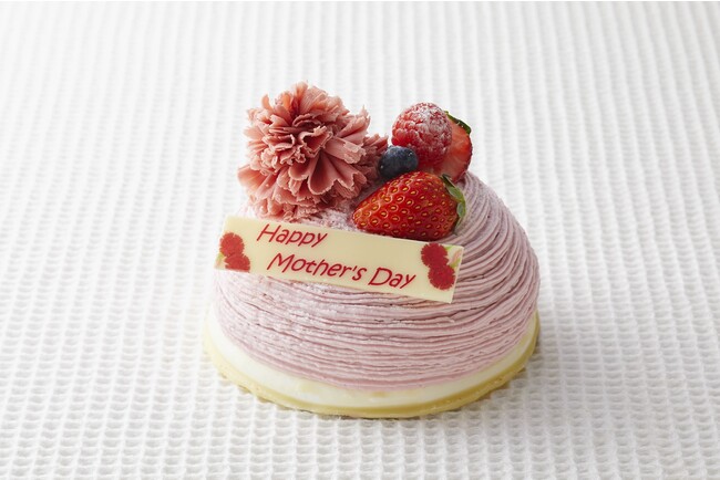3種のベリー入りのいちごゼリーとホワイトチョコレートのムースをラズベリーのクリームで包み、華やかなデコレーションで仕上げました。今年はご家族で楽しめるホールサイズと、お一人様用のカットケーキサイズの2種をご用意。「いつもありがとう」の気持ちを込めて、可愛らしい母の日モンブランをお贈りください。