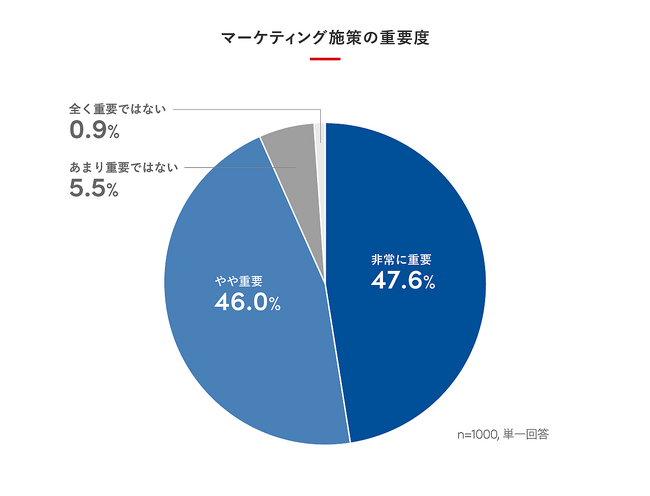 1. 全体の9割以上が「営業先の新規開拓や新規受注のために、マーケティング施策が重要」と回答