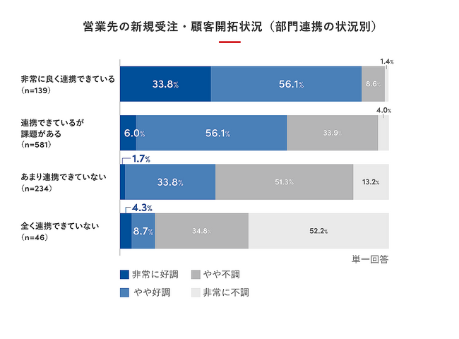 8割が「マーケティングと営業の連携に課題あり」と回答。「良く連携できている」企業ほど新規開拓や受注が好調