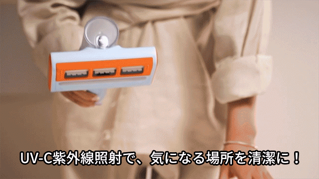 強力なUV-C紫外線照射で、衣類、ぬいぐるみ、ソファー、布団などの除菌が可能。
