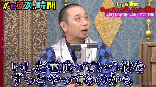 そのほか、過去3回の結婚ではなかった自身の変化や、「役者としてある程度の目標値まで達せたときに…」とプロポーズについても語ったいしださん。面接の最後には結婚への思いを込めた手紙を披露しますが…。いしださんの手紙朗読を見届けた大悟さんは「いしだ壱成っていう役をずっとやってるのかも」とコメント、真栄田さんも「いしださん自身じゃなかった、作られた感じというか」「横顔がタイガー・ウッズに見えてきた」と続け、いしださんを苦笑させました。終始“本心を語っているのか?”と不安を抱いていた面接官たちは、果たしていしださんの結婚を認めたのか…?
