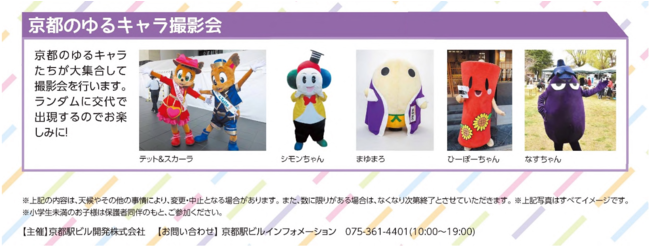 京都駅ビルの公式マスコットキャラクター「テット&スカーラ」や地域のゆるキャラも出演予定です。