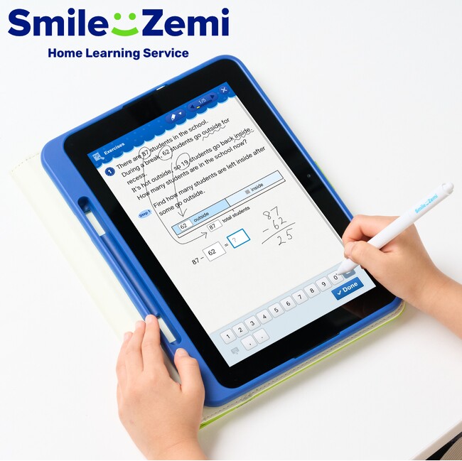 「Smile Zemi」のタブレット画面は、手をついたまま文字を書くことができる独自のパーム・リジェクション技術を採用し、正確にストレスなく自分の考え方を書き込むことで、理解の定着につながります。学習目的でのみ使用するように設計されたクローズドシステムで、ゲームやwebサイトにアクセスできません。保護者は、スマートフォンやタブレットを介して子どもの学習状況をリアルタイムに確認できます。子どもが学習を楽しみながら続ける機能として、アバターや壁紙、コレクションカードなど、成績に応じたリワードを受け取ることができます。