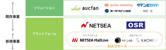 既存事業として、相場検索サービス「オークファン」およびBtoB取引プラットフォーム「NETSEA」を運営し、安定的な収益基盤を構築しています。