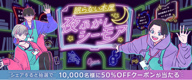 エヌ・ティ・ティ・ソルマーレ株式会社(本社:大阪市中央区、代表取締役社長:朝日利彰、以下 NTTソルマーレ)が運営する、国内最大級電子コミック配信サイト「コミックシーモア」は、読者の皆様がオススメする作品を集めたバーチャル書店「眠らない本屋 夜ふかしシーモア」を、2023年9月6日(水)からオープンします。また、期間限定キャンペーンも同時開催します。
