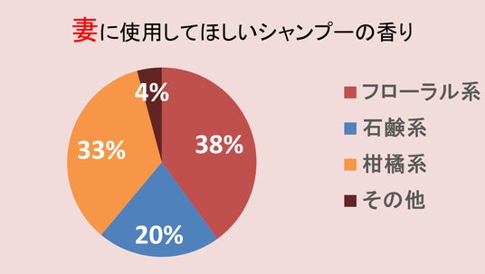 夫は妻に対して「フローラル系」で華やかかつ上品な香りを求め、妻は夫に対して「石鹸系」の不自然過ぎない香りが心地良いと感じているようです。夫婦円満を目指す第一歩として、こちらの調査結果をもとにシャンプー選びをしてみてもいいかもしれません。