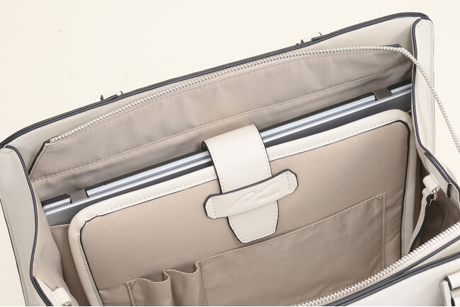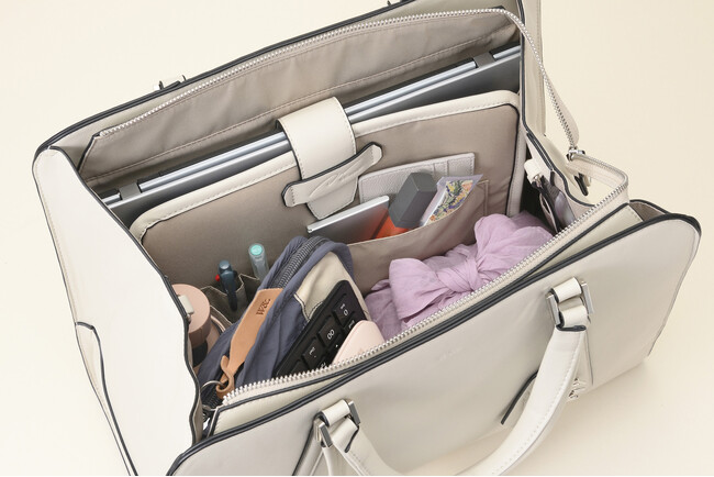メインファスナーを開けずとも、通勤時に必要な小物を素早く出し入れできます。