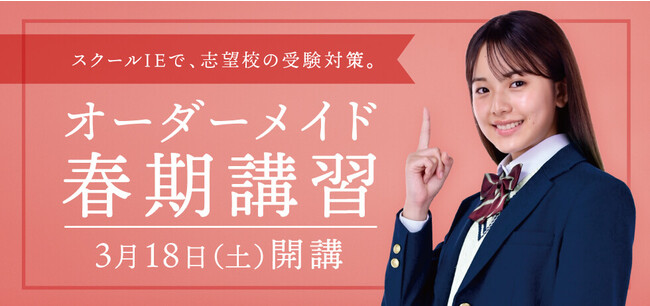 総合教育サービス事業の株式会社やる気スイッチグループ(東京・中央区、代表取締役社長:高橋 直司)が展開する個別指導塾「スクールIE(R)」は、小学生から高校生までの全学年を対象とした「オーダーメイド春期講習」を全国1,000以上の教室で3月18日(土)開講、申し込み受付をスタートしました。