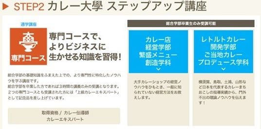 (注意事項) カレー大學専門コースはカレー大學卒業が前提となるため、