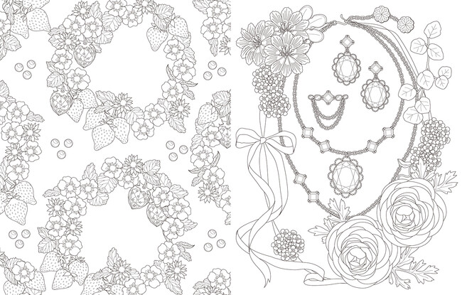花と宝石が織りなす世界に色をぬって、あなただけの新しい物語を生み出して、美しい作品を自分だけの色で仕上げましょう。