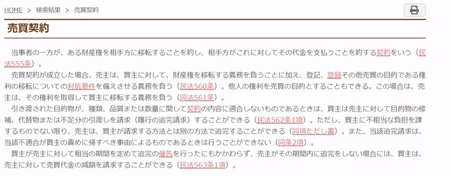 「もっと見る」を選択すると、画面が遷移し具体的な法律用語の解説が表示されます。