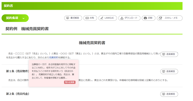 本標準搭載により、『こんなときどうするネット 会社で使える書式と文例プラス』に収録している雛形や解説と同時に、法律用語の内容理解・確認ができるようになり、皆様のリーガルリサーチ・契約書業務の作成において、より貢献ができる機能実装となっています。