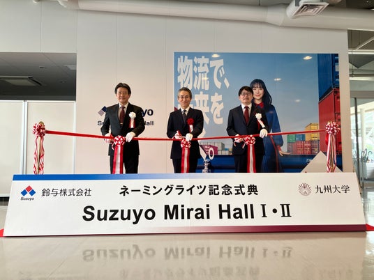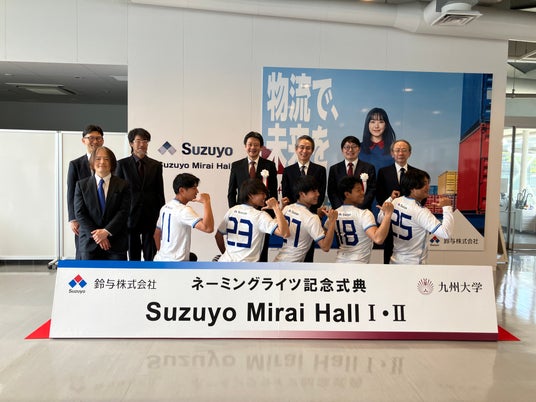 鈴与株式会社(本社:静岡市清水区、代表取締役社長:鈴木健一郎)は、九州大学(所在地:福岡市、総長:石橋達朗)とネーミングライツに関する契約を締結し、2026年4月28日(火)、同大学伊都キャンパスにて記念式典を開催しました。2026年3月13日(金)に本契約を締結し、伊都キャンパス イーストゾーン大講義室IおよびIIの愛称を、それぞれ「Suzuyo Mirai HallI(鈴与みらいホールI)」、「Suzuyo Mirai HallII(鈴与みらいホールII)」としました。九州大学において、伊都キャンパス文系地区にて学内施設のネーミングライツ(命名権)に関する契約を締結するのは当社が初めてとなります。