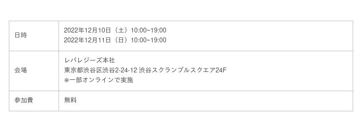レバテック株式会社が運営する、ITエンジニア・クリエイター専門エージェント、レバテックカレッジ( https://rookie.levtech.jp/college/ )は、12月10日(土)~11日(日)に「レバテックハッカソン」を開催することをお知らせします。