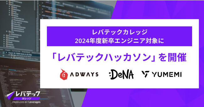 レバテックカレッジではエンジニアを志望する学生の就職支援・教育事業を行っています。今回は、株式会社アドウェイズ・株式会社ディー・エヌ・エー・株式会社ゆめみの3社に協賛いただき、「レバテックハッカソン」を開催いたします。協賛いただく3社には、IT業界の未来を担う学生エンジニアのスキルアップに貢献ができることに賛同いただき、本イベントを開催する運びとなりました。