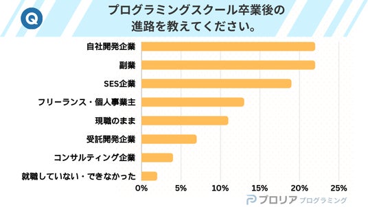 パフォーマンスマーケティング事業・メディア事業の株式会社インタースペース(所在地:東京都新宿区、代表取締役社長:河端伸一郎、証券コード:2122、以下インタースペース)のグループ会社である株式会社TAG STUDIOが運営する、プログラミング学習者向けWebメディア「プロリア プログラミング」(URL:https://prorea.jp/programming/ )は、プログラミングスクール卒業生を対象に、「卒業後の進路」に関するアンケート調査を実施しました。