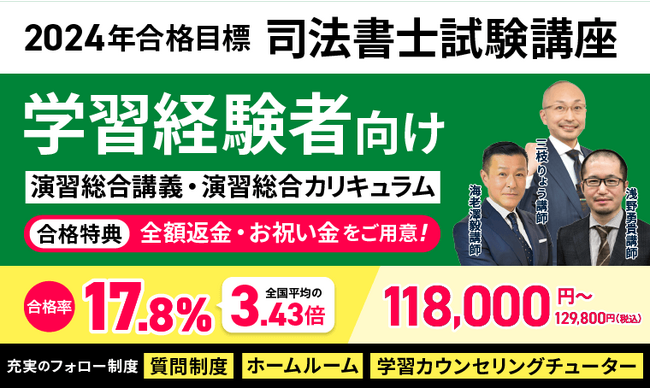 司法書士試験の学習経験がある方が、一気に合格レベルまで学力を引き上げるためのカリキュラムです!