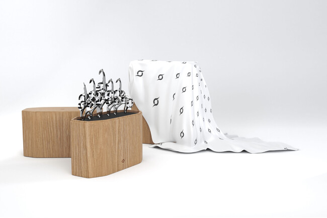 『Ō(オー)』はパッケージにもこだわりました。6丁の縫製ハサミを保管するケースは、創業の地である岐阜県産のクリ材を使用した木製ケースを採用いたしました。また、日本らしさを感じていただけるように、Ōのロゴが入った風呂敷に包んでお渡しします。