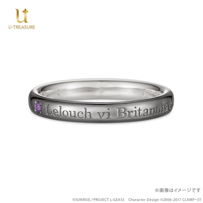 ルルーシュの印象的なセリフ「ルルーシュ・ヴィ・ブリタニアが命じる(Lelouch vi Britannia commands you.)」を刻印したメッセージリング。