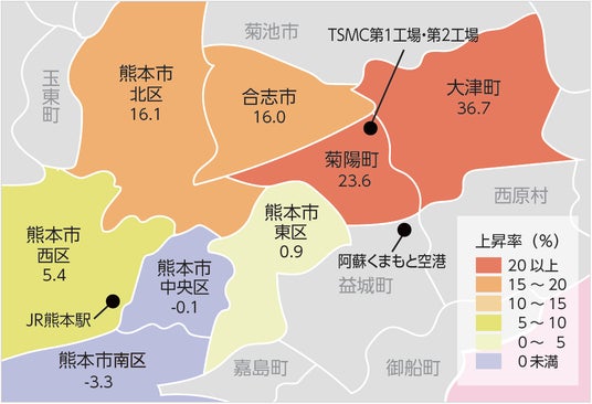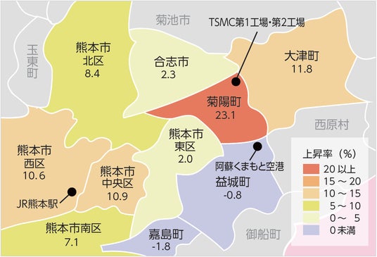 TSMC周辺の公示地価上昇率(2021年と2024年の比較)