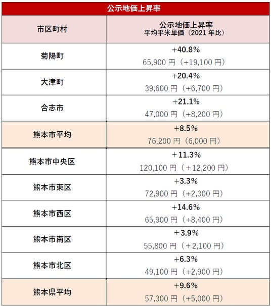 菊陽町・大津町のシングル向きマンション家賃上昇率は2021年比20%超