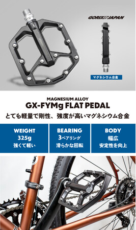 自転車パーツの開発・製造・販売を手掛ける、GORIX株式会社(所在地:大阪市東淀川区瑞光3-9-29、代表取締役:長野明)の自転車パーツブランド「GORIX」から新商品の「フラットペダル(GX-FYMg) 」が発売されました。