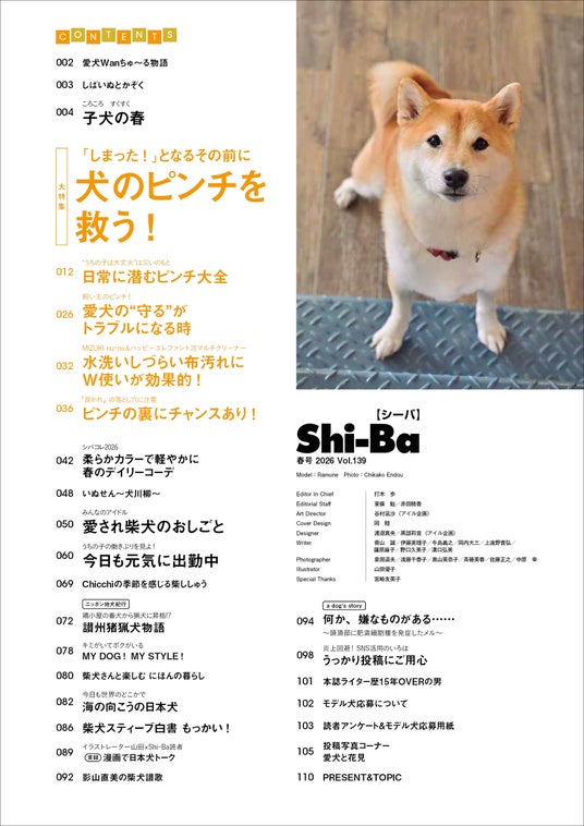 大特集「犬のピンチを救う!」の他、春に着せてあげたい柔らかカラーのファッションアイテム、家庭の中で愛犬が担うおしごと特集など、注目のコンテンツが目白押しです!