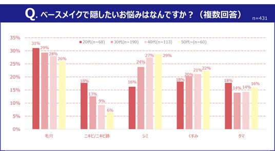 Q.ベースメイクで隠したいお悩みはなんですか?(複数回答)
