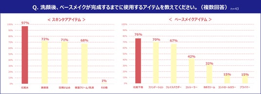 Q.洗顔後、ベースメイクが完成するまでに使用するアイテムを教えてください。 (複数回答)