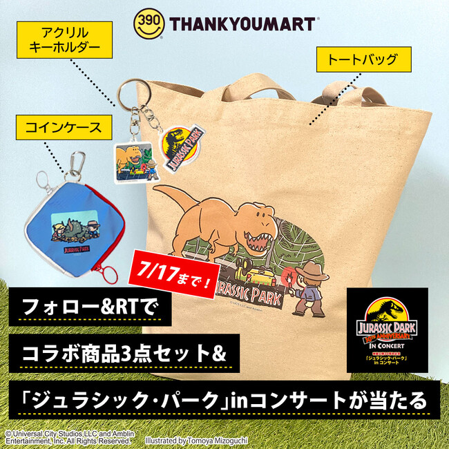 「カワイイを手のひらに」をテーマに、390円(税込429円)を中心とした価格でバラエティ豊かなアパレル雑貨を揃える「サンキューマート」は、シリーズ第1作の公開から今年で30周年を迎える「ジュラシック・パーク」とのコラボレーション雑貨を、全国のサンキューマート店舗および公式オンラインショップで8月上旬より入荷順次販売開始いたします。