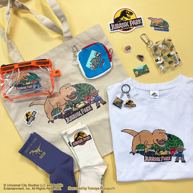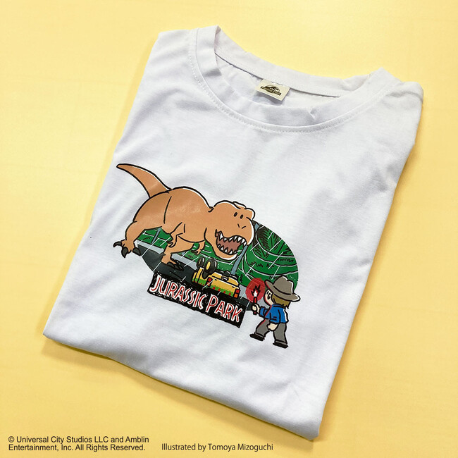 今回発売する商品は、2022年7月に映画『ジュラシック・ワールド/新たなる支配者』の公開記念として発売したコラボアイテムでも好評を頂いた、イラストレーター「みぞぐちともや」さんコラボのイラストアートを採用しています。手描きタッチのアートを活かし、映画のワンシーンを切り取ったようなデザインに仕上げました。