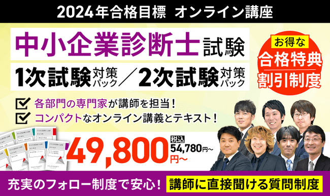 株式会社アガルート(本社:東京都新宿区、代表取締役:岩崎 北斗、以下「アガルート」)が運営する「アガルートアカデミー」は、2024年中小企業診断士試験合格目標1次試験・2次試験対策講座をリリースいたしました。