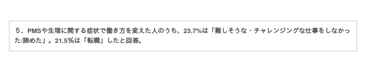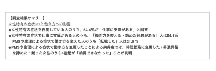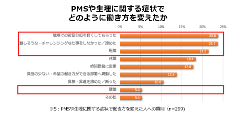 ~PMSや生理による症状で働き方を変えた人のうち「転職した」21.5%~