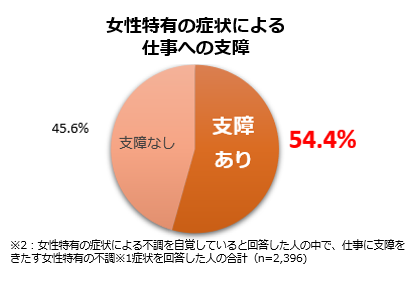 何らかの女性特有の症状を自覚している人のうち54.4%の女性が、仕事への支障があったと回答。(【グラフ2.※2】)