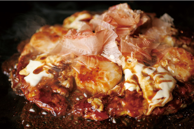 10分以上かけて、丁寧な焼き上げる伝統の一枚。ずっしりと重い生地とは対局に、上品で後味も軽い上品に仕上げます。本場、大阪の味を継承した「ホンマモン」の味をお楽しみください。