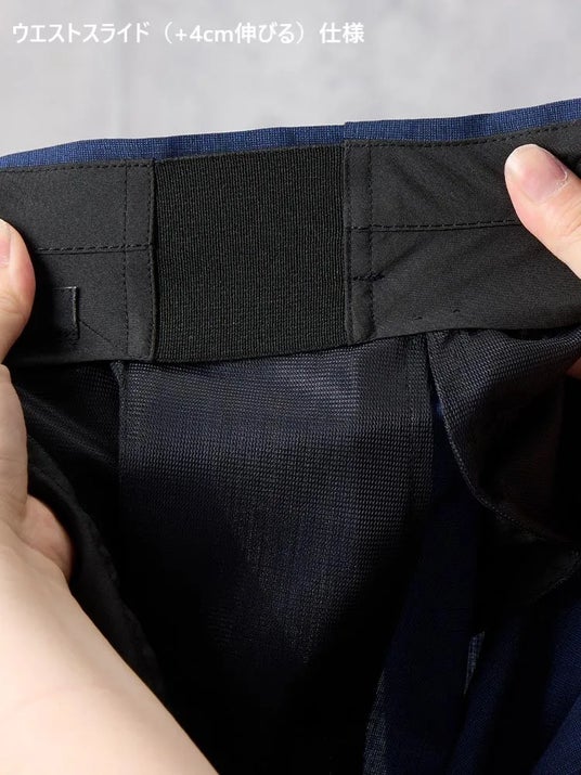 ・ウエストスライド:ウエスト裏スライドゴム仕様でお腹まわりラクラク履き心地