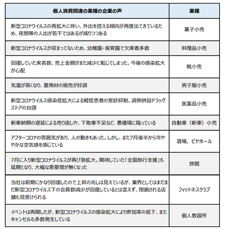 業界別:新型コロナウイルスの再拡大を受け、個人向けサービスが下押し