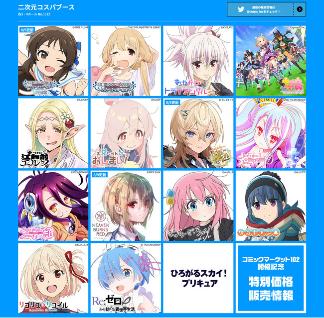 各ブースでの販売グッズ情報は、二次元コスパ公式WEBサイト内〈コミックマーケット102〉特設ページでもご確認いただけます。