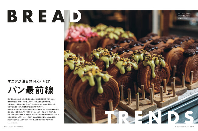 パンのトレンドがわかる!と、毎年人気の「パン特集」。身近な存在でありながら、理想の味を追い求めるパン職人の手によって、進化を続けるパンの最新事情をお届けします。なかでも今年の注目は、N.Yで話題となっている“進化系クロワッサン”。日本でも少しずつ広まりつつある、そのユニークな食感と味わいの魅力をいち早く紹介します。ほかにも、“世界のパン″や“中華パン″といったキャラ立ちパンの専門店、シェフが力を注ぐ“湯種″や“麹使い″などのマニアック製法で作るシンプルパン、まるで料理なごちそうサンドイッチなど、2023年に食べたい、食べてほしい、楽しいパンの世界を大特集します。