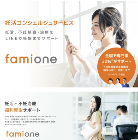 妊活コンシェルジュ「ファミワン」 ( https://lp.famione.com/ )は、妊活に取り組む夫婦を支える、LINEを活用したパーソナルサポートサービスです。LINEのアカウント登録をすることで専門のチェックシートが届き、その入力内容を分析し、あなたの状況に合わせたアドバイスを行います。