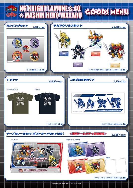 『魔神英雄伝ワタル』と、今年35周年を迎える『NG騎士ラムネ&40』が夢のコラボレーション。 コラボを記念して、『魔神英雄伝ワタル 七魂の龍神丸』の監督・神志那弘志さん、『NG騎士ラムネ&40』のキャラクターデザイン・齊藤卓也さんによる描き下ろしキービジュアルを公開!キービジュアルを使用した記念グッズを展示会内にて販売いたします。