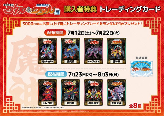 展示会内の物販会場にて1会計【3,000円(税込)】のお買い上げごとにTVシリーズに登場する敵魔神のオリジナルカード1枚をランダムでお渡しいたします。