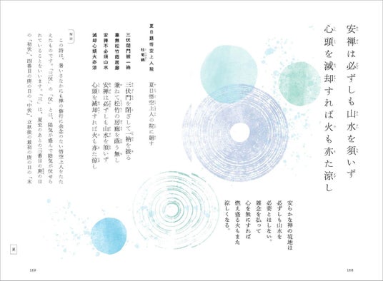 本書は、季節をテーマに私たちの暮らしに寄り添い、古来変わらない季節の情感や風物を詠んだ、100の言葉から始める漢詩入門です。イオクサツキさんの美しくやわらかなイラストとともに、現代に生きる私たちも共感できる情感が込められた、美しい漢詩の一節を紹介します。唐代を代表する白楽天や李白、杜甫をはじめ、孟浩然、王維、范成大(はんせいだい)などの漢詩だけでなく、菅原道真や夏目漱石などによる日本の漢詩も取り上げます。