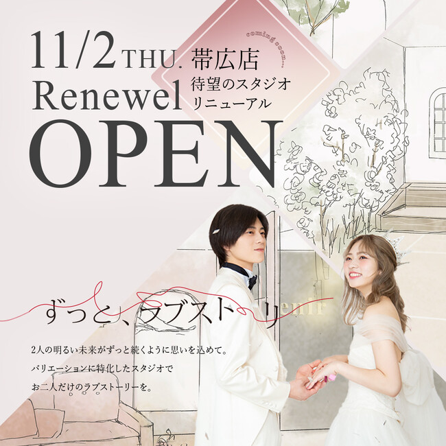 このたびご結婚、ご成人、お子様の記念を帯広市内だけでなく釧路や北見、十勝など道東全域からたくさんのお客様に来て頂き、より魅力的なスタジオにしたいと考え大型リニューアルが決定いたしました!