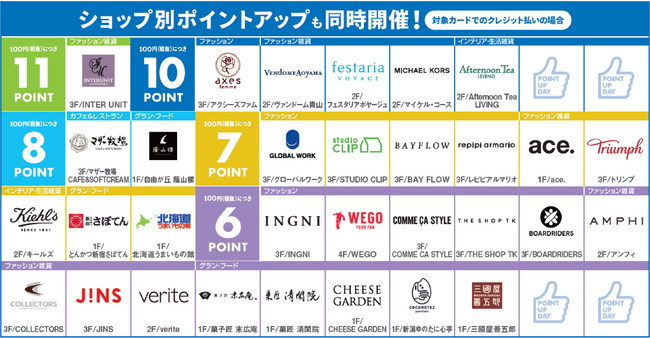 ショップ別ポイントアップ対象店舗・ポイント付与数: