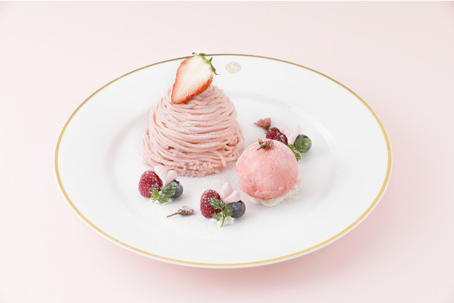 この季節ならではの桜を使った淡いピンクのモンブランを、ドリンクとのセットでご提供。モンブランにはモッチモチの白玉と甘酸っぱくジューシーなイチゴを入れ、爽やかな味わいに仕上げました。桜のアイスクリームと一緒にご賞味ください。