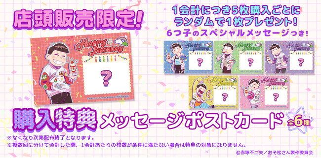 6つ子のスペシャルメッセージつきポストカードをランダムで1つプレゼント(全6種類)