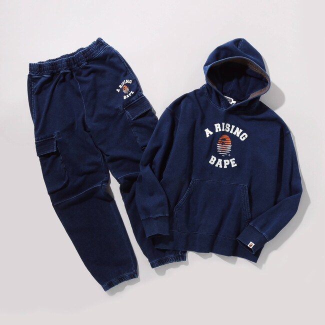 日本国内のBAPE STORE(R)、BAPE.COM 限定でインディゴ染めのスウェットパンツとフーディーが登場。