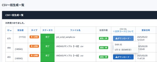 AIで求人原稿を自動生成する「ANDASU」(アンダス)に、CSVダウンロード時に文字コード選択機能(BOM付)を追加し絵文字の含まれた求人原稿の生成に対応いたしました。