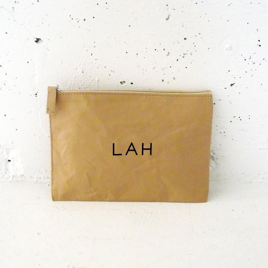 期間中、エルエーエイチの商品を2点以上お買い上げの方へ、ウォッシャブルペーパーを使用した、ナチュラルカラーのオリジナルポーチを